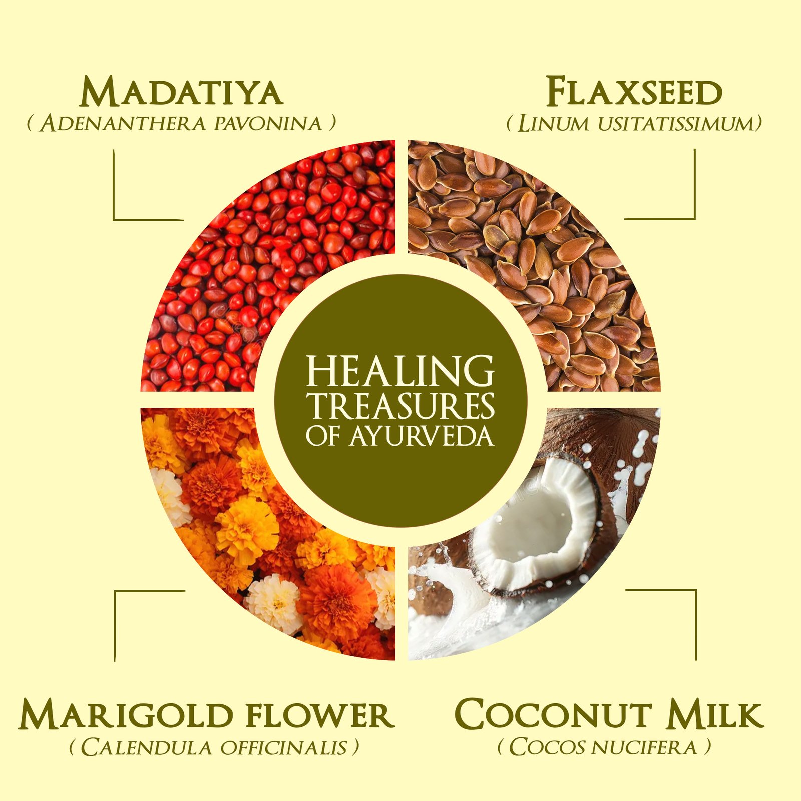 Aqua, Glycerine, Ankenda, Emulsifying Wax, Cetyl Alcohol, Madatiya, Flaxseed, Marigold Flower Extract, Coconut Milk, Vitamin E, Acrylate Copolymer, Sodium PCA, Phenoxyethanol.